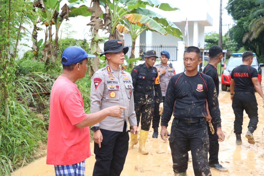 Tarakan – Dansat Brimob Polda Kaltara Kombes Pol Sarly Sollu, S.I.K.,M.H. tinjau langsung Lokasi bencana alam tanah longsor di wilayah Kota Tarakan.