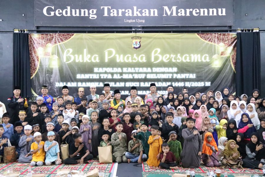 Tarakan – Dalam suasana penuh kehangatan dan kasih sayang di bulan suci Ramadan, Kapolda Kalimantan Utara, Irjen Pol Hary Sudwijanto, S.I.K., M.Si., menggelar kegiatan buka puasa bersama anak-anak Selumit Pantai yang berlangsung di Gedung Tarakan Marennu, Gunung Lingkas, Tarakan Timur. Kegiatan ini turut dihadiri para tokoh masyarakat, tokoh agama, tokoh pemuda, ketua RT/RW, imam masjid, serta guru-guru TPA Ma’arif.