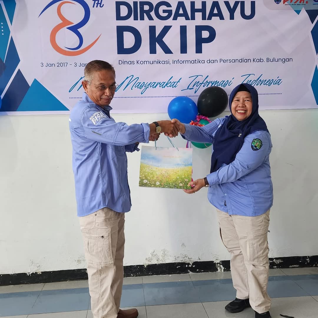 Bulungan – Dinas Komunikasi, Informatika dan Persandian (DKIP) menggelar acara perpisahan dan penyerahan cendera mata kepada ASN DKIP yang memasuki masa purna tugas, penyerahan cendera mata oleh Kepala DKIP Hj. Andriana, S.H., M.A.P kepada Kabid. Persandian Drs.Kamaluddin, dihadiri seluruh ASN dan P3K di Lobi Kantor DKIP.